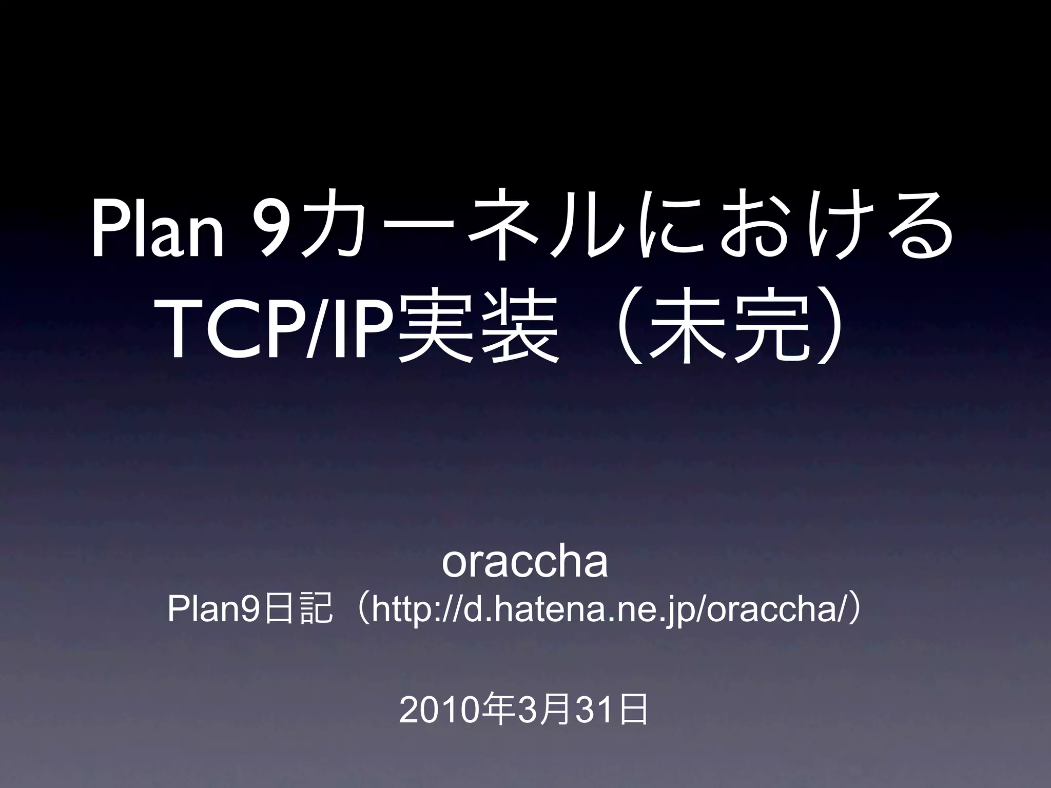 Plan 9 introduces updates to TCP/IP networking in Plan 9. Key points include: