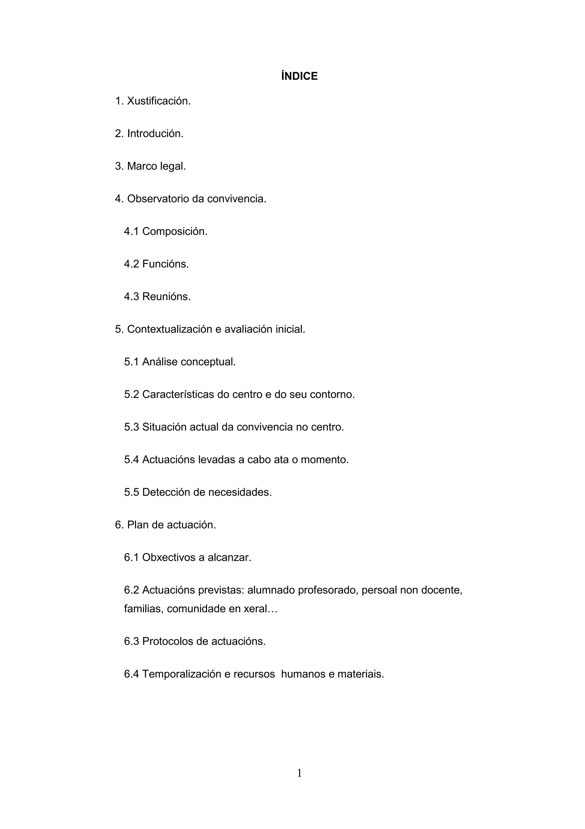 de Convivencia entre os indicadores para avaliar anualmente os proxectos institucionais do