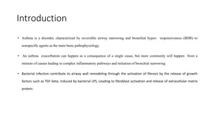 3. Preliminary results from previous studies suggest bacteria like H. influenzae, S. pneumoniae, and M. catarrhalis commonly cause COPD exacerbations, while studies of asthma patient microbiota show alterations compared to healthy individuals.