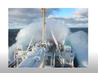 The document discusses how possessions accumulate over time like ice builds up on ships, weighing them down. It uses the metaphor of a home being like a ship to represent how excess stuff builds up in homes relentlessly through gifts, sales, etc. It encourages reducing clutter by giving items away through sharing communities to travel lightly on your "ship" through life.