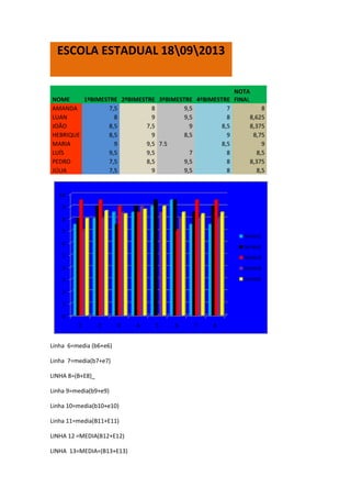 NOME1ºBIMESTRE 2ºBIMESTRE 3ºBIMESTRE 4ºBIMESTRE
