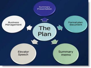 The document discusses various types of business plans including strategic plans, tactical plans, operational plans, and other types of plans. A strategic plan focuses on high-level goals and defines actions to achieve those goals. Tactical plans help execute strategic plans and cover shorter time periods. Operational plans define how strategic and tactical plans will be implemented through engagement of resources and management of risks and sustainability. Other plan types include single-use plans for one-time objectives and standing plans that provide ongoing guidance.