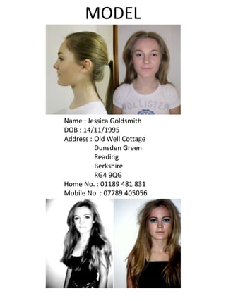 Jessica Goldsmith was born on November 14, 1995 and lives at Old Well Cottage in Dunsden Green, Reading, Berkshire RG4 9QG. Her home phone number is 01189 481 831 and her mobile number is 07789 405056.