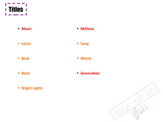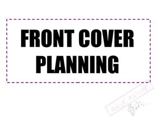 The document discusses planning the front cover of a music magazine. Various title options are considered but "Bright Lights" is selected based on a Facebook poll. Different color and font options are explored for the title before deciding on a bright yellow font that evokes nightclub lighting. Two layout designs are discussed for the front cover, with one using the main image off-center, and for the contents page, with one option deemed too simple.