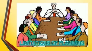 This document discusses various aspects of planning including definitions, purposes, and types of plans. It defines planning as a process of setting objectives by analyzing information to select courses of action to achieve goals. It notes that planning is the primary function of management, is goal-oriented, intellectual, pervasive, continuous, integrates activities, and effects efficiency. The document also discusses types of plans including objectives, policies, procedures, methods, rules, programs, projects, and budgets.
