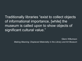 The document outlines guidelines for planning and mounting library exhibits at Smathers Libraries, emphasizing the importance of storytelling, audience engagement, and collaboration. It details the policies for exhibitions, including the need for a complementary online presence and the avoidance of promoting external agendas. Key components for successful exhibits include clarity, innovation, and effective labeling to enhance visitor understanding and experience.