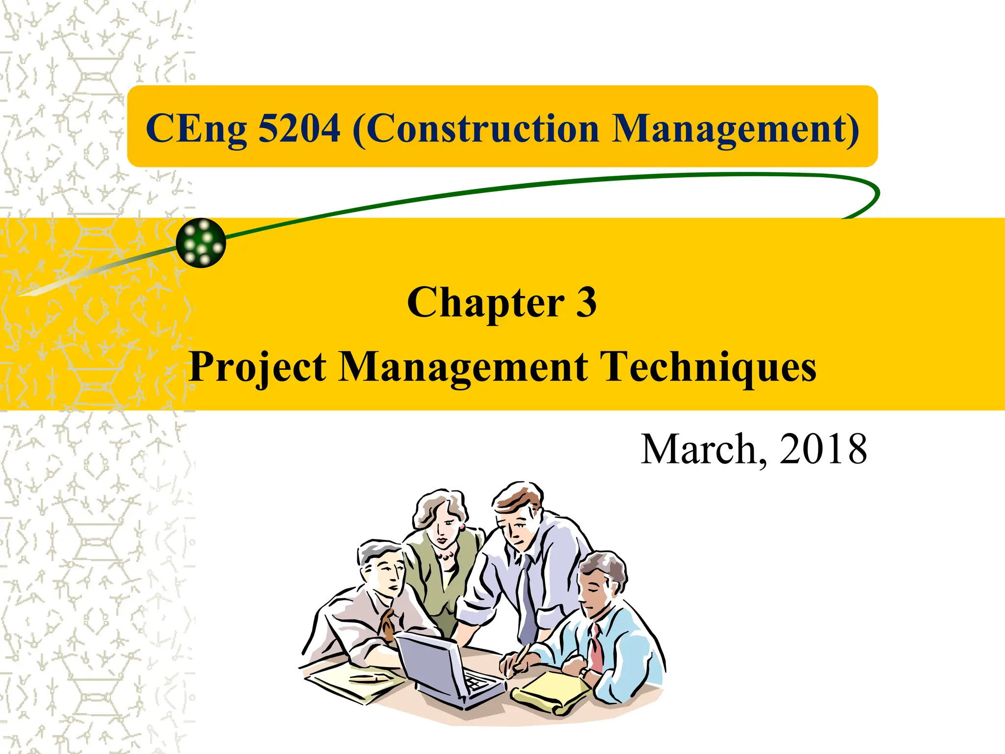 The document discusses project planning and scheduling techniques for construction management. It describes planning as identifying all activities needed to complete a project, including defining the scope of work, sequencing tasks, and estimating time and resource requirements. The key aspects of construction planning covered are generating a work breakdown structure of all tasks, developing a schedule using techniques like critical path method, and creating resource plans for managing manpower, materials, equipment, and finances over the project timeline. Overall, the document emphasizes that thorough planning and scheduling of all project activities is essential for successful construction project completion on time and within budget.