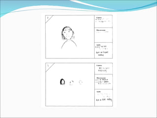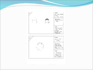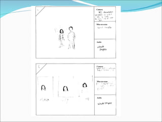 The document provides casting and costume ideas for characters in a romantic comedy film. Key characters include Emily, the quiet main character; Josh, the attractive popular boy; Chelsea, the pretty but mean girl; and Lauren, a goth girl. Possible actors and their pros and cons are discussed. Costume ideas and locations are also proposed. The document ends with storyboard ideas, including an opening scene where the main characters meet and a bathroom confrontation scene.
