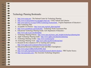 The document outlines steps for planning technology professional development for staff:
