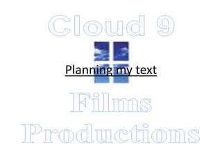 The document outlines planning for a student film project. The initial ideas were for either a film trailer or magazine spread. The student decided on a horror film trailer. They developed a narrative about a group of friends on a camping trip where strange things start happening. Details were drafted for the title, fonts, narrative, actors, locations, costumes and props. The student then moved to a first draft of the shooting script.