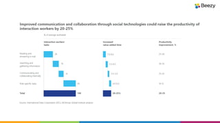 The document discusses a systems-based approach for planning enterprise collaboration in a digital workplace, emphasizing the importance of aligning technology with employee needs and corporate goals. It highlights the necessity of effective communication, collaboration, and knowledge sharing to improve productivity and employee engagement, while also outlining practical steps and methodologies for implementation. The overall message promotes a holistic way of integrating digital tools within organizations to enhance both employee experience and collaborative effectiveness.