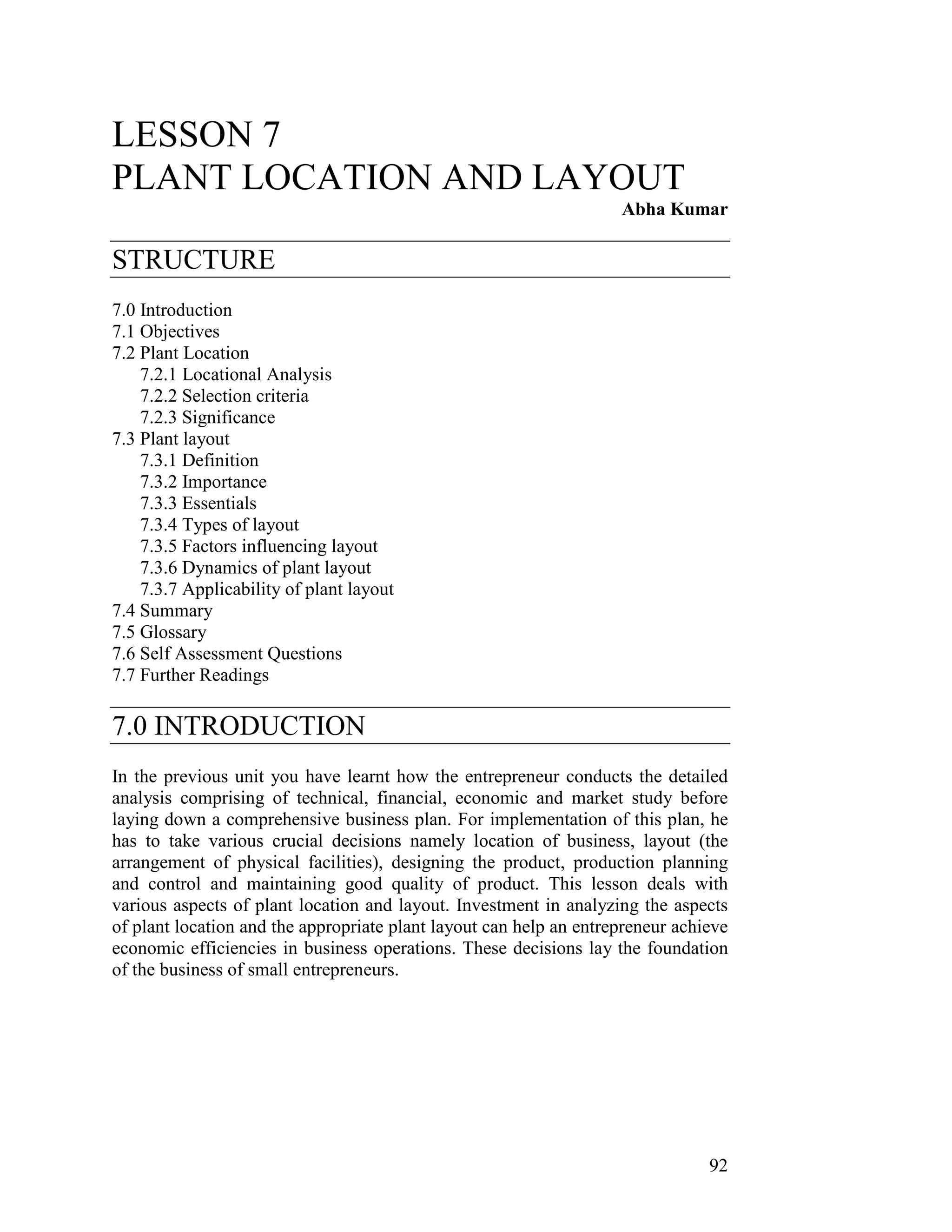 This document discusses plant location and layout. It defines plant location as choosing the region and site for setting up a business or factory after considering various costs and benefits. An ideal location minimizes costs while maximizing market access and profits. Key factors in selecting a location include transportation, resources, labor, infrastructure and incentives. Plant layout refers to arranging physical facilities within a factory to optimize workflow. The document describes different types of layouts like product, process and fixed position, and factors that influence layout decisions. An efficient layout minimizes costs while improving productivity, flexibility and worker conditions.
