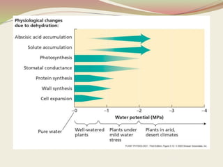 The document discusses various types of stress that can affect plants, including biotic stress from pathogens and abiotic stress from physical and chemical factors like drought, flooding, temperature extremes, light levels, salt levels, air pollution, wind, and nutrient deficiencies or toxicities. It describes how each stress can impact plant growth and physiology and outlines some strategies plants use to tolerate or avoid stress, such as escaping the stress period, avoiding stress through morphological adaptations, or tolerating stress through physiological and biochemical mechanisms.