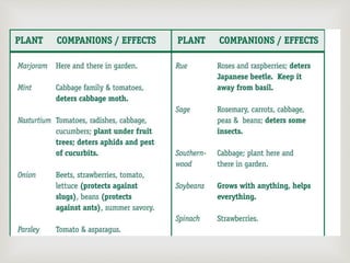 This document discusses various plantation methods including sowing methods (broadcasting, drilling, dibbling, transplanting, planting), cropping systems (mono-cropping, intercropping, crop rotation), and permanent raised bed farming. Sowing methods such as broadcasting scatter seeds across a field while drilling places seeds in rows. Intercropping grows multiple crops together to better utilize resources while crop rotation improves soil health. Permanent raised bed farming provides benefits like improved soil quality and water management for higher yields.