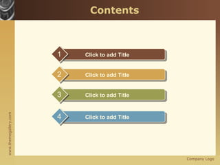 The document provides instructions and templates for a PowerPoint presentation. It includes tips for applying a logo to all slides using the slide master view. Various templates are shown such as diagrams, cycles, tables, and charts that can be used and customized with text. Templates include options for concepts, titles, text boxes, and years. The last slide thanks the user.