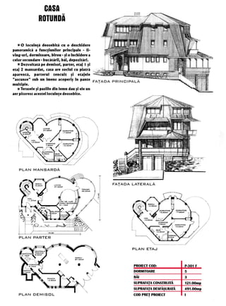 Documentul detaliază sistemul de comandare a proiectelor de case oferit de neopolis s.r.l., incluzând informații despre arhitecți, prețurile proiectelor și timpul estimat pentru livrare. Proiectele respectă legislația română și se bazează pe tarife minime stabilite de Ordinul Arhitecților din România, iar clienții pot solicita servicii conexe și personalizate. În plus, drepturile de autor pentru proiecte aparțin arhitecților, iar utilizarea acestora este restricționată la construirea unei singure locuințe.