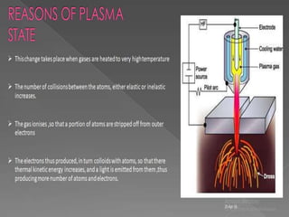 Plasma arc machining (PAM) uses a high-temperature plasma jet to melt and remove material. It works by ionizing gas into a plasma state over 50,000°C and directing it as a high-velocity stream onto the workpiece. PAM can machine hard metals with good accuracy and at a fast rate. It finds applications in tube mills, welding of specialty alloys, and nuclear systems. While expensive initially, PAM provides precision control. Variations include conventional, air, and dual-flow plasma arc cutting.