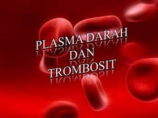 Plasma darah adalah cairan kuning yang menyertai sel darah dan mengandung protein, air, garam mineral, dan bahan organik. Plasma membantu proses pembekuan darah, mengangkut zat gizi, dan memelihara tekanan darah. Trombosit berperan dalam pembekuan darah dengan membentuk gumpalan di luka.