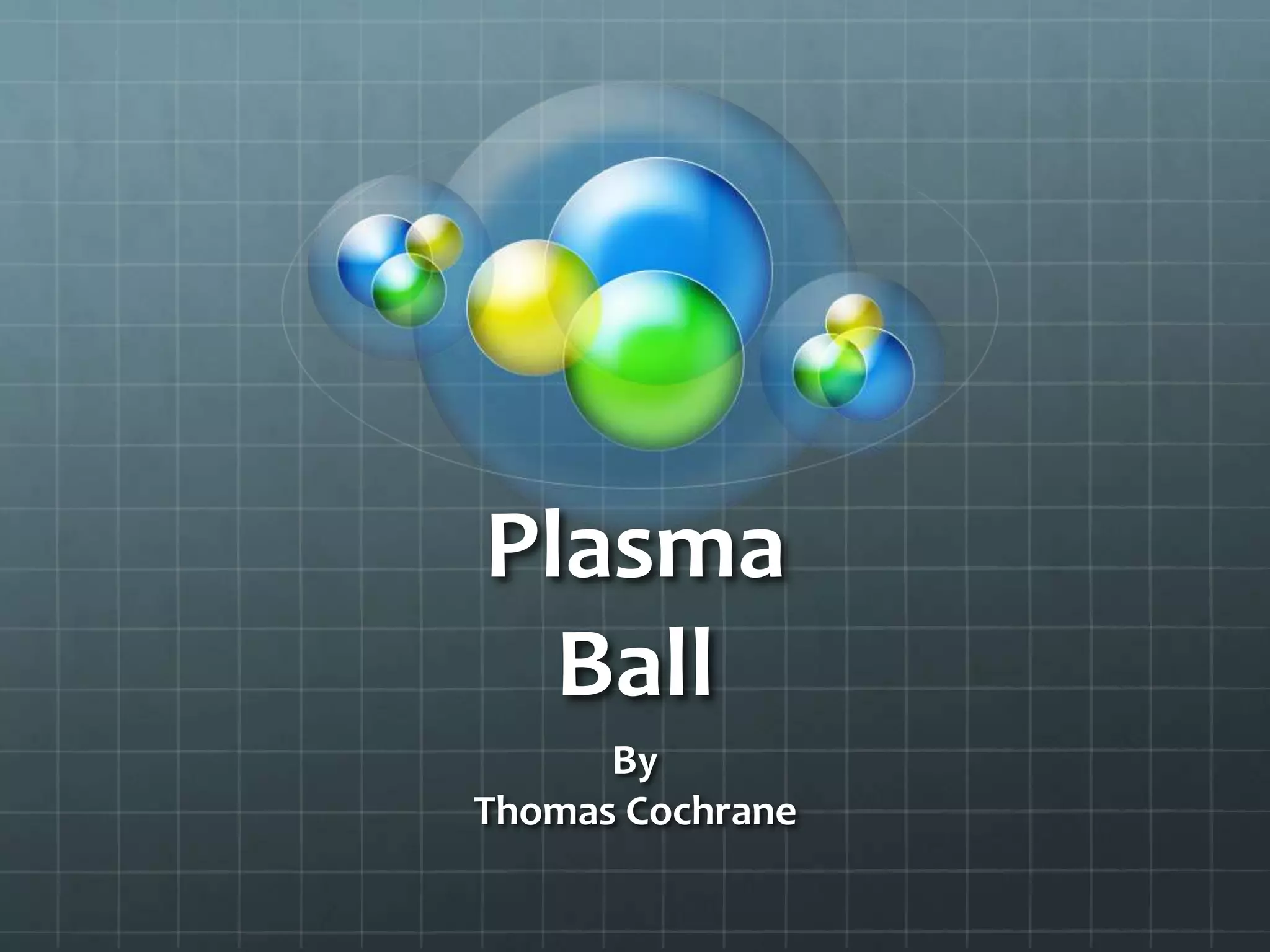 A plasma ball is a glass sphere filled with neon gas and contains a high-voltage electrode in the center. When electricity is applied, it creates blue and purple plasma filaments inside the sphere. Touching the outside of the glass causes the plasma filaments near the point of contact to brighten as it provides a path for the electrical energy to flow. Nikola Tesla is credited with inventing the plasma ball in 1894.
