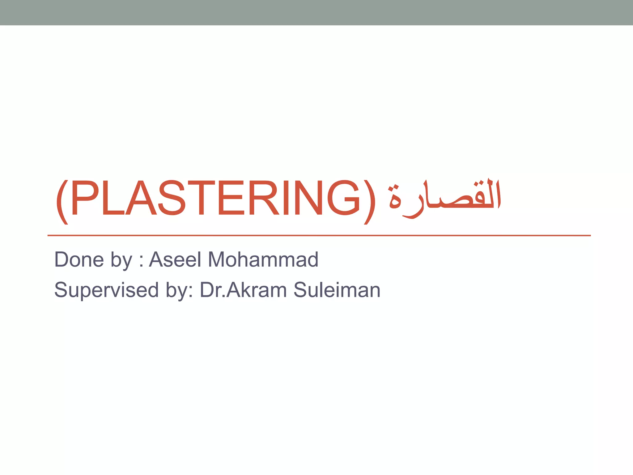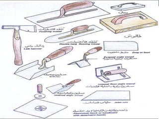 يتناول المستند تفاصيل عن عملية القصارة، بما في ذلك أنواعها، مكوناتها، وطرق التحضير والتنفيذ. يشمل النص توضيحات حول المكونات الأساسية كالإسمنت والجير والرمل بالإضافة إلى النقاط المتعلقة بطرق القياس والمعايير المطلوبة. كما يسلط الضوء على أهمية معرفة الأنواع المختلفة من القصارات وتأثيرها على جودة التشطيب النهائي.