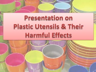 Plastics, derived from organic polymers, are versatile materials that are inexpensive but have significant health and environmental risks. Exposure to heat can release harmful chemicals such as dioxins and phthalates, leading to health hazards including cancer and hormonal imbalances, while their degradation contributes to pollution affecting food chains and ecosystems. The widespread use and disposal of plastics result in air, water, and land contamination, posing serious challenges and costs for environmental management.