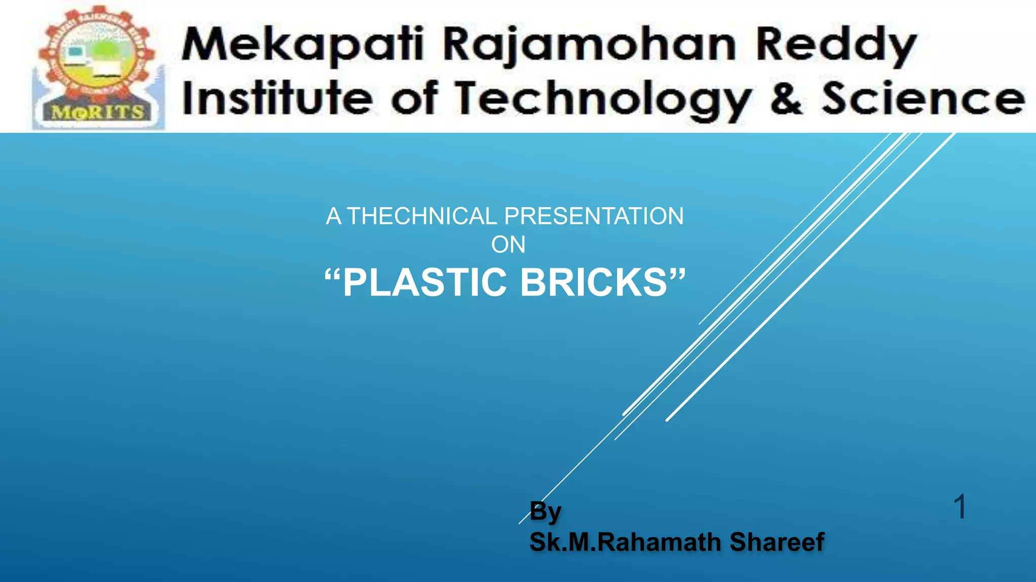 The document is a technical presentation on 'plastic bricks' that details the preparation process of using waste plastic for eco-friendly construction materials. It outlines advantages such as low cost and high strength, alongside disadvantages like fire resistance issues and harmful gas emissions during preparation. The presentation also discusses the future scope of this technology, including industrial establishment and recycling efforts.