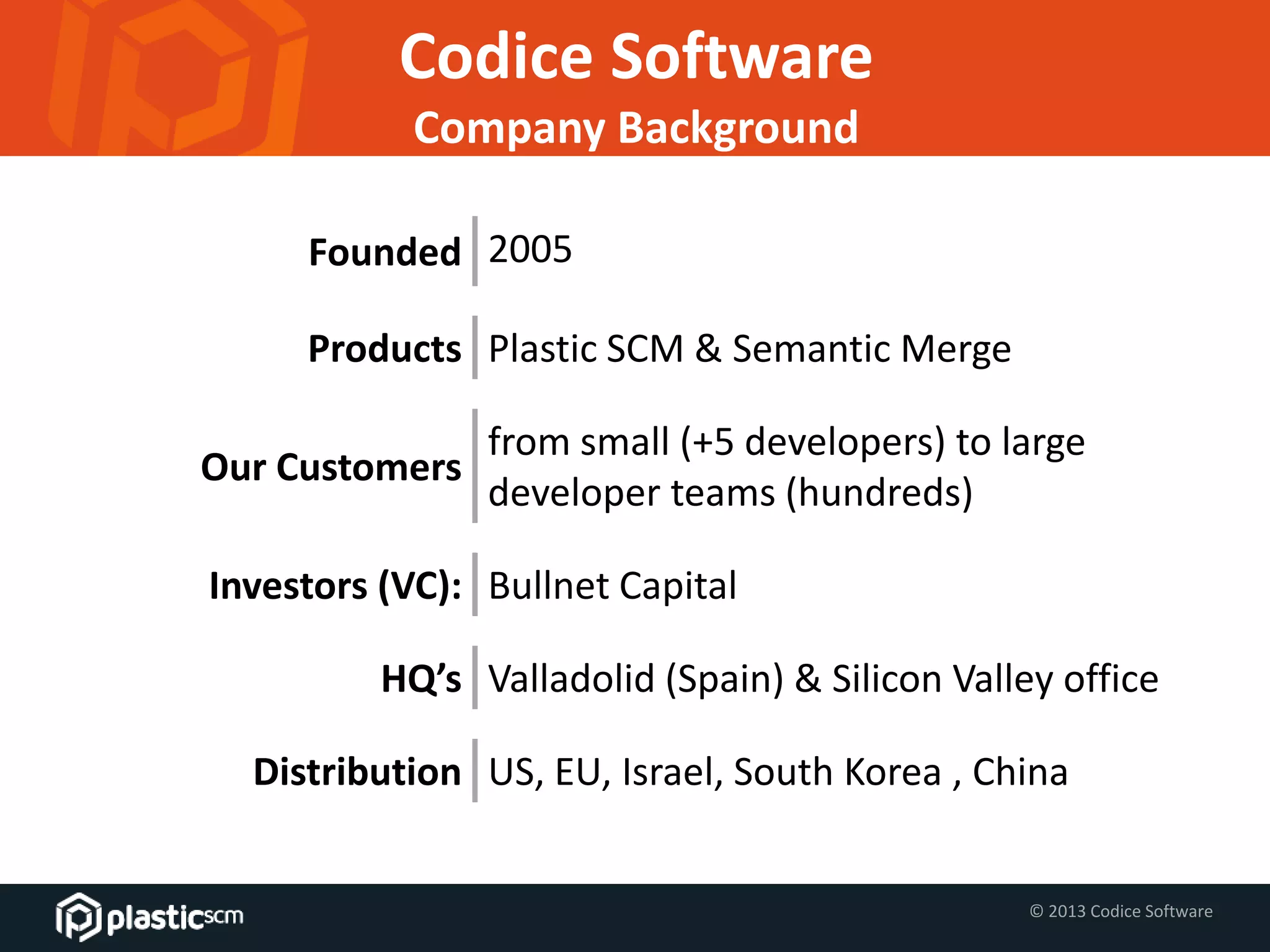 This document summarizes Codice Software, a company that provides version control software. It introduces Plastic SCM, their flagship product, which enables parallel development through branching and merging capabilities. Plastic SCM aims to increase productivity and quality by allowing developers to work independently and merge changes efficiently. The document highlights customer case studies where Plastic SCM helped reduce costs and time to market. It also outlines Codice's values of proven technology, customer focus, and striving for excellence.