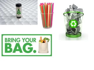 Plastics are synthetic materials made from organic polymers that can be molded and set into rigid or elastic forms. Plastics are used widely but their production and disposal negatively impact the environment and health. In the future, if plastic pollution continues unchecked, people may rely only on plastic for daily needs like drinking, eating, transportation, recreation, and more. The document outlines various ways individuals can reduce plastic use like bringing reusable bags for shopping, refusing plastic straws, and choosing compostable or recyclable items over single-use plastics. Strong action is needed now to curb the plastic problem and protect the environment.