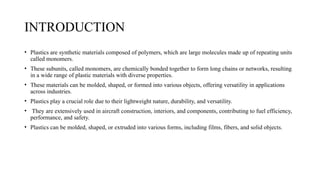 • Plastics aresynthetic materials composed of polymers, which are large molecules made up of repeating units