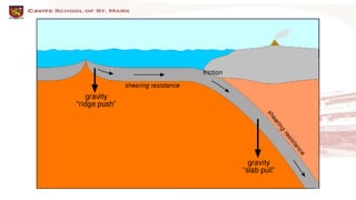 This document outlines the theory of plate tectonics and how it leads to the formation of different landforms. It describes how the Earth's lithosphere is made up of plates that move in relation to one another due to convection currents in the underlying asthenosphere. The movement of these plates at divergent, convergent, and transform boundaries generates volcanic and seismic activity that shapes the Earth's surface over time.