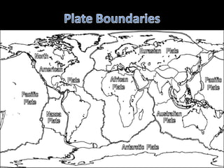 Plate boundaries are the borders between sections of the Earth's crust called tectonic plates. These boundaries can separate plates, causing land masses to break apart into smaller pieces over time. There are currently seven major tectonic plates that make up the Earth's land.