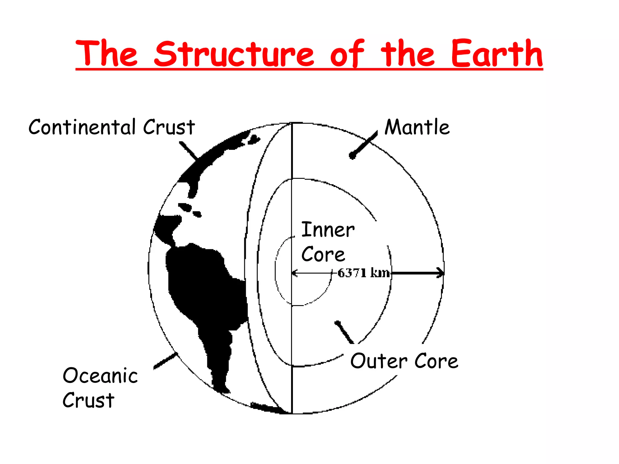 The document discusses the structure and composition of the Earth, including the crust, mantle, outer core, and inner core. It also discusses plate tectonics and the different types of plate boundaries: constructive, destructive, conservative, and collision. At destructive boundaries, oceanic plates are subducted under continental plates, forming volcanoes. At collision boundaries, continental plates push together to form mountain ranges. At constructive boundaries, plates move apart and new crust is formed.