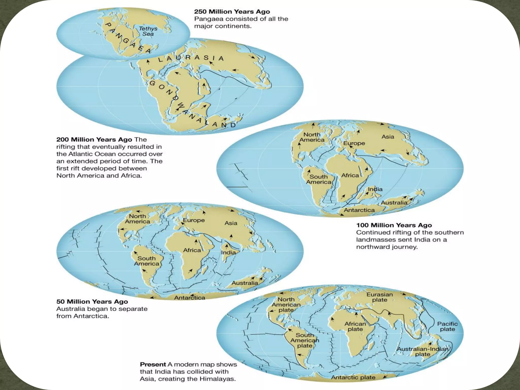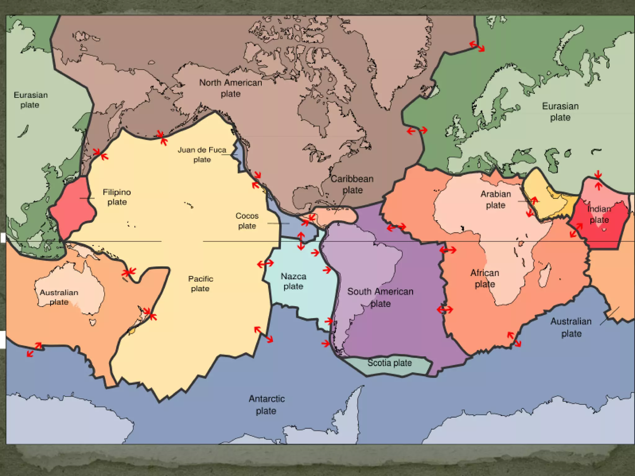 - The movement of plates causes geological features like mid-ocean ridges, volcanic island arcs, and mountain ranges to form.