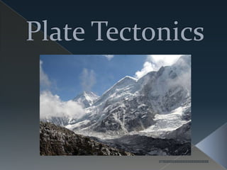 Plate tectonics is the theory that the Earth's outer layer is divided into plates that move around on the mantle. There are 7 major plates that move at varying speeds in different directions. Plate boundaries are where two plates meet, and there are three types - convergent where plates push together, divergent where they pull apart, and transform where they slide past each other.