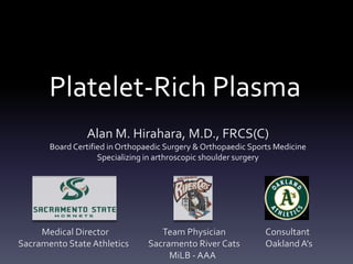 This document provides information about platelet-rich plasma (PRP) and its use in orthopedic applications. It discusses: