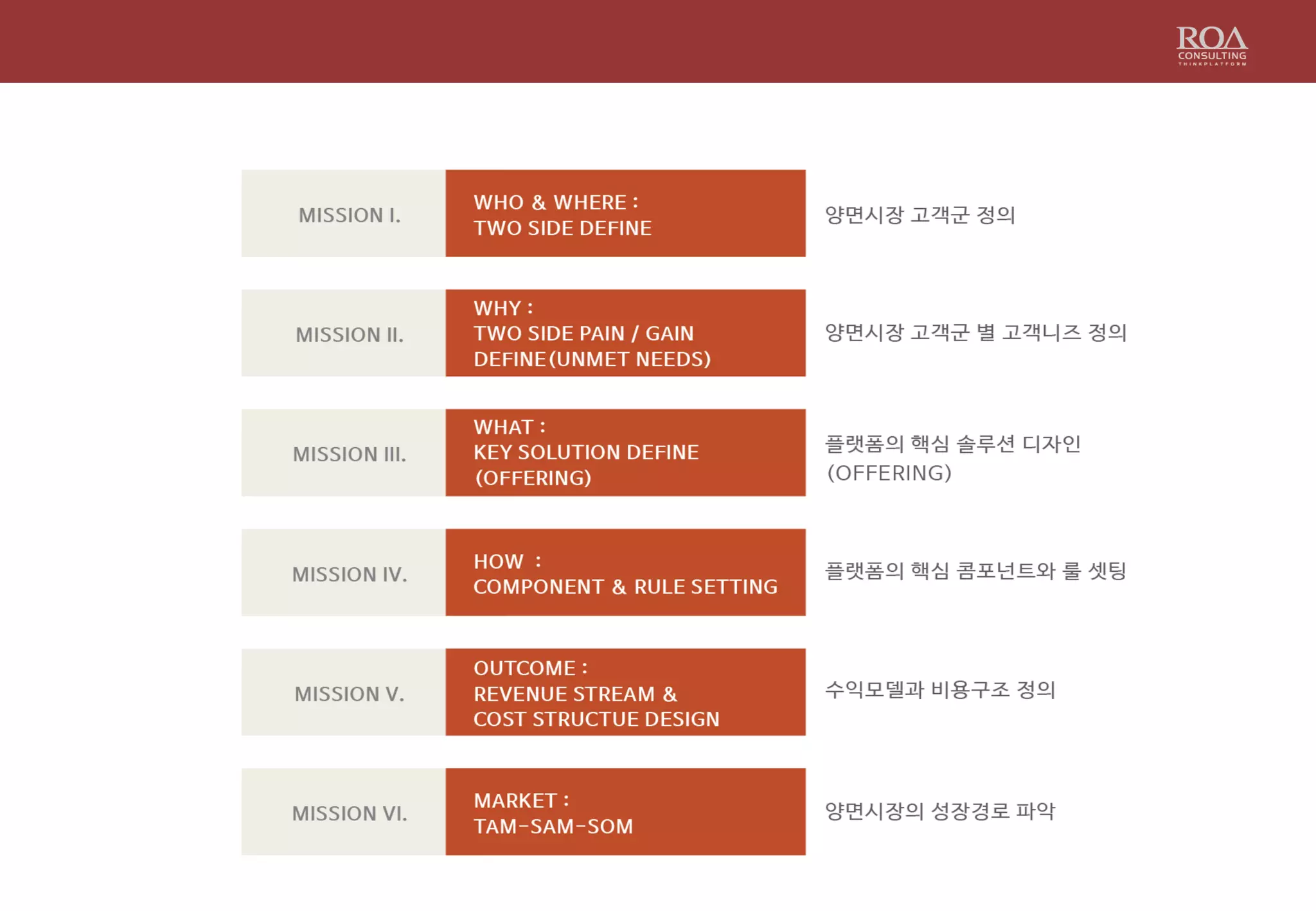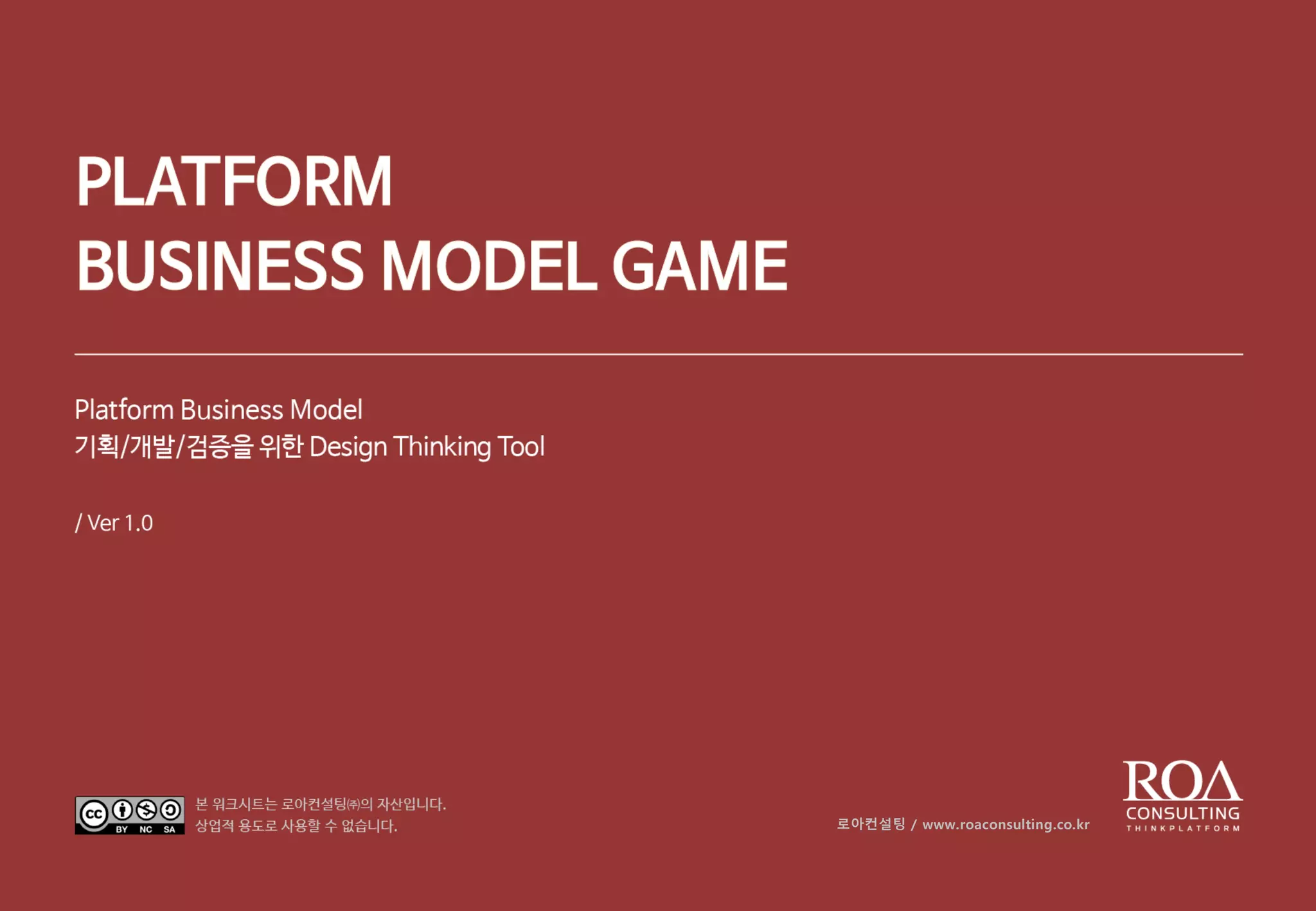 로아컨설팅이 국내 최초로 플랫폼 비즈니스 모델을 진단/검증할 수 있는 Worksheet를 개발하여 공개합니다. 이미 대기업 신규 플랫폼 사업모델 전략 워크샵을 통해 검증된 디자인싱킹 툴로서, 3년동안 로아컨설팅이 자체적으로 진행해온 B-Camp에 플랫폼 스타트업 전문 B-Camp용으로 활용할 예정입니다.