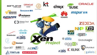 The document outlines various security mitigations and features for the Xen project, addressing vulnerabilities like Meltdown and Spectre across different architectures such as x86 and ARM. It discusses performance improvements, support statuses, and potential future developments, including disaggregation and certification efforts for safety-critical environments. It highlights the need for better upstream integration and community engagement to improve security features and support status.
