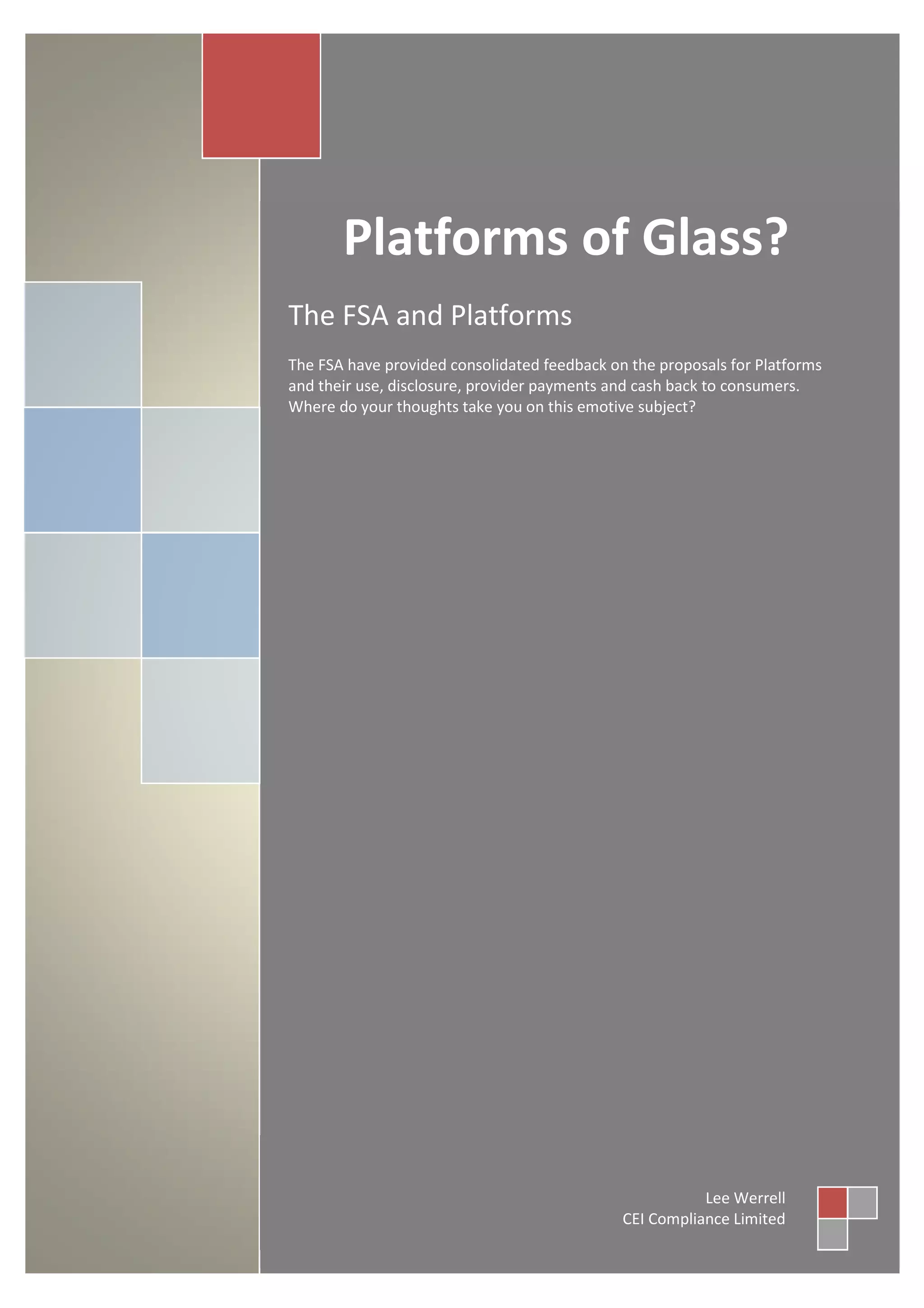 The document provides an overview of the Financial Services Authority's (FSA) consultation on platform services, focusing on issues such as provider payments, cash rebates, and the responsibilities of advisers when using platforms. Key proposals include a ban on cash rebates and payments to platforms, emphasizing clarity for consumers regarding service charges while recognizing the need for further research before final rules are established. Additionally, it discusses the FSA's stance on re-registration processes, capital adequacy standards, and information dissemination, highlighting the complexities and evolving nature of the platform market in UK financial services.