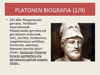 • Testuinguruhorretan, Platonek, filosofo agrafoa