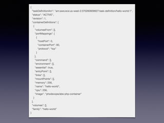 The document discusses using Play Framework, Docker, CircleCI, and AWS together to create an automated microservices build pipeline. Key aspects include using GitHub for source control, CircleCI for continuous integration to build Docker images, pushing images to Docker Hub, and deploying to AWS using ECS for container orchestration. The author demonstrates setting up each part of the pipeline live.