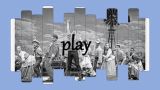 A play is a form of literature written for the theater. It uses dialogue between characters to tell a story involving conflicts and tensions. Plays are divided into acts and scenes for dramatic effect. Playwrights express ideas and emotions through their characters. Elements of a play include the plot, characters, dialogue, setting, conflict, and resolution. Common types of plays are tragedies, comedies, domestic plays, tragicomedies, and melodramas. Examples given are Macbeth, Oedipus Rex, and The Merchant of Venice. Plays function to reveal thoughts through live performance and help audiences understand characters and events.
