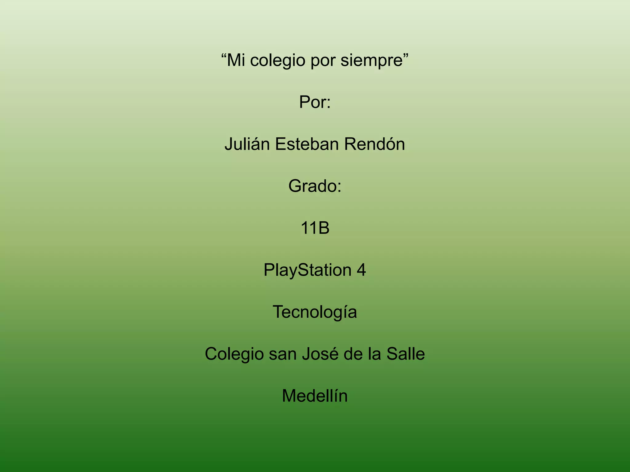 El documento habla sobre la nueva consola PlayStation 4 de Sony. Menciona algunas de sus características tecnológicas avanzadas y que tendrá un nuevo control con panel táctil y detección de movimiento. El autor opina que la consola revolucionará la industria de los videojuegos y que le gustaría conseguirla cuando salga en Colombia, aunque esperará a que baje de precio.