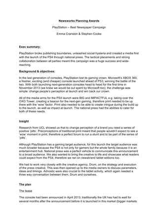 The PlayStation PS4 launch campaign successfully transformed brand perception through innovative national press strategies, including a memorable teaser ad that stirred social media engagement. Unique collaborations with media partners, particularly with 'The Sun,' led to standout creative executions that generated substantial audience interactions and solid sales. As a result, the PS4 became the fastest-selling console, significantly outperforming competitors even with a delayed UK launch.