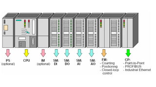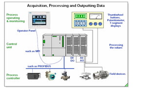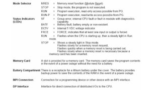 The document discusses the development of control systems from manual to PLC control. It provides details on traditional control devices like relays, contactors, and motor starters. It then describes the different types of control systems including PLC, DCS, and PC-based controls. The remainder of the document focuses on PLC systems, their components, functions, advantages, disadvantages and applications in industries like food processing. It also discusses the history and development of PLCs and lists some major PLC brands.