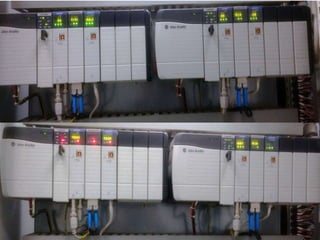 PLC stands for Programmable Logic Controller. Allen-Bradley (AB) is a brand of PLCs manufactured by Rockwell Automation. AB PLC models include the FlexLogix, MicroLogix, SLC 500, CompactLogix, ControlLogix, and GuardLogix. Common software used includes RSLogix 500, RSLogix 5000, Studio 5000, FactoryView, and RSView Studio. PLCs communicate using protocols like DH+, DH485, DeviceNet, ControlNet, and Ethernet. Protocols are distinguished based on factors such as the number of supported nodes, maximum network length, and communication speed.