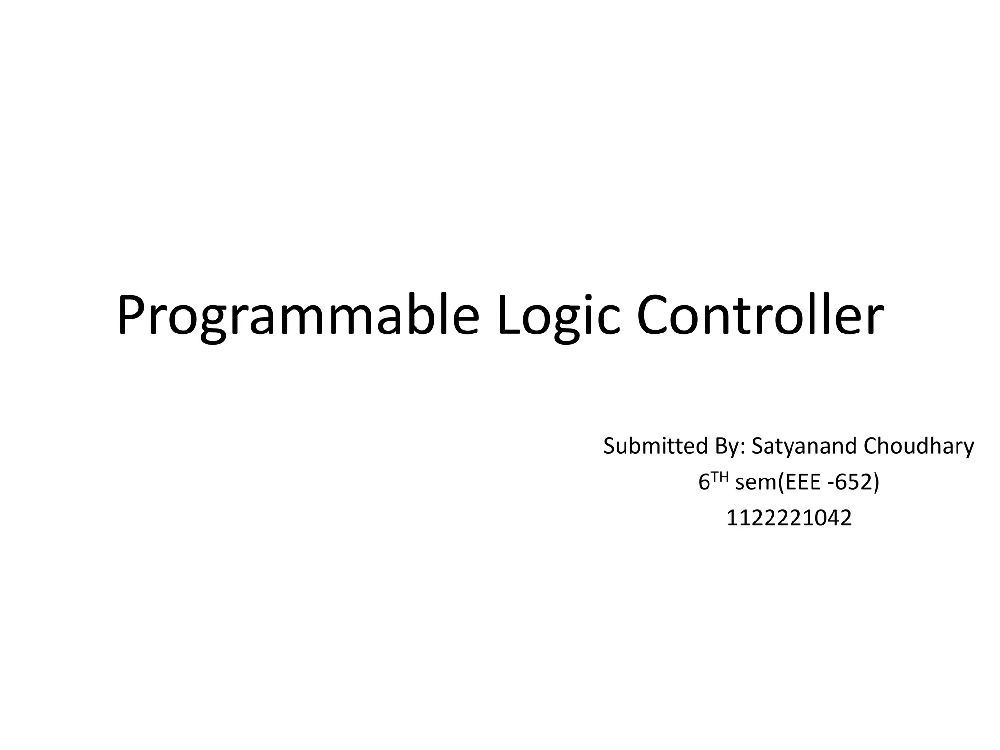 Programmable Logic Controllers (PLCs) were developed to control industrial machinery in a programmable and reliable way. A PLC has a processor that executes stored instructions to control inputs and outputs based on ladder logic programming. It includes a power supply, memory to store the user program, and I/O modules to interface with field devices. PLCs offer advantages over hardwired control systems like easier programming, flexibility, and communication capabilities. They are used widely in industrial applications for tasks like sequencing, timing, counting, and analog control.