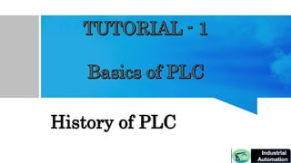 Before PLCs, control systems used relay logic which lacked flexibility for process changes and expansion. The first commercial and successful PLC was designed and developed by Modicon in the late 1960s as a relay replacement for General Motors. A PLC is an industrial solid-state computer that performs logic functions to control machines and processes. It reads input signals from sensors, processes the data, and provides output signals to control devices like motors, valves, and relays. PLCs were developed to replace mechanical relay-based systems and offer more flexibility through reprogramming compared to hardwired relay panels.