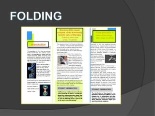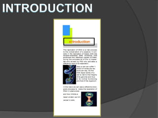 This document discusses recent scientific research into blocking DNA repair enzymes as a potential cancer therapy. It summarizes findings from a February 11, 2012 article in Science News Line. Researchers solved the structure of a DNA repair enzyme called PNKP, which could be targeted to develop new cancer therapies. Blocking PNKP's repair work in cancer cells may be a way to selectively damage DNA in tumors and kill cancer cells. The goal is to find drugs that would sensitize tumors to DNA-damaging cancer therapies by inhibiting specific repair enzymes like PNKP. Targeting DNA repair pathways provides an opportunity for improved cancer treatment and reduced side effects compared to chemotherapy.