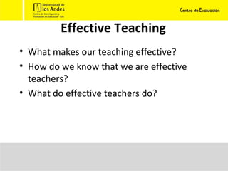 The document discusses key aspects of language assessment including its purposes, types, challenges, and best practices. It emphasizes that assessment should be an ongoing process that is democratic, clear, contextualized, integrated, aligned to instruction, and provides feedback to empower students and improve learning. Teachers are encouraged to reflect on their own assessment practices.