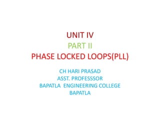 The document provides an overview of phase locked loops (PLLs). It discusses: